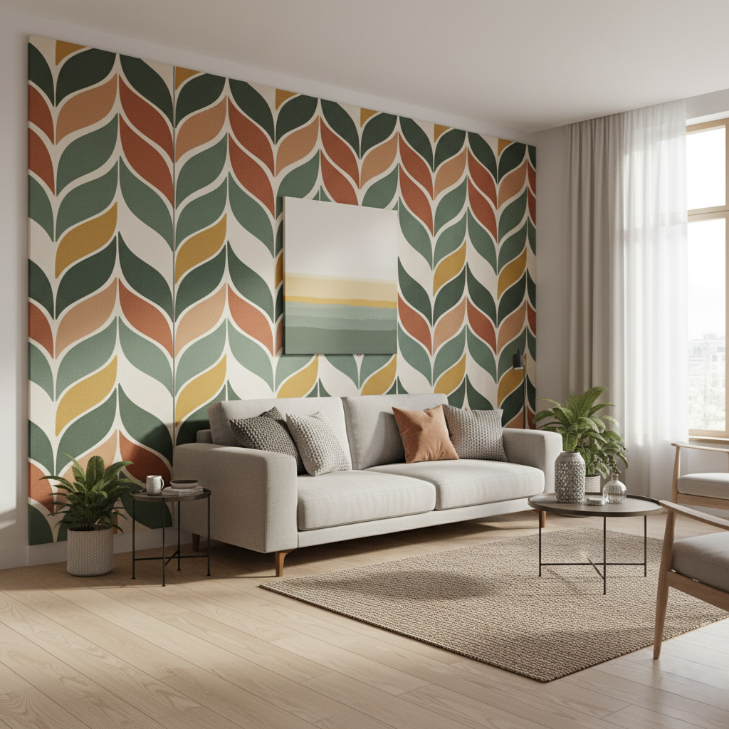 For homeowners seeking style and function, acoustic art panels feature printed fabric designs that double as wall décor while reducing noise levels.